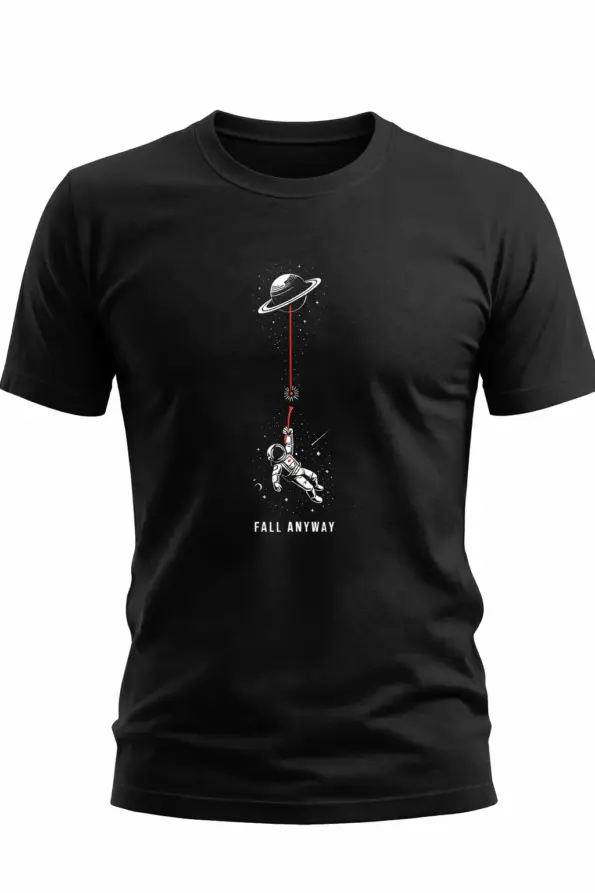 Add a cool and bold touch to your everyday style with this Fall Anyway Astronaut Printed Black T-Shirt for Men. Featuring a unique space-inspired graphic with a motivational quote, this t-shirt is perfect for casual wear, outings, travel, college, and daily styling. Easy to pair with jeans, joggers, or shorts for a trendy and effortless look.