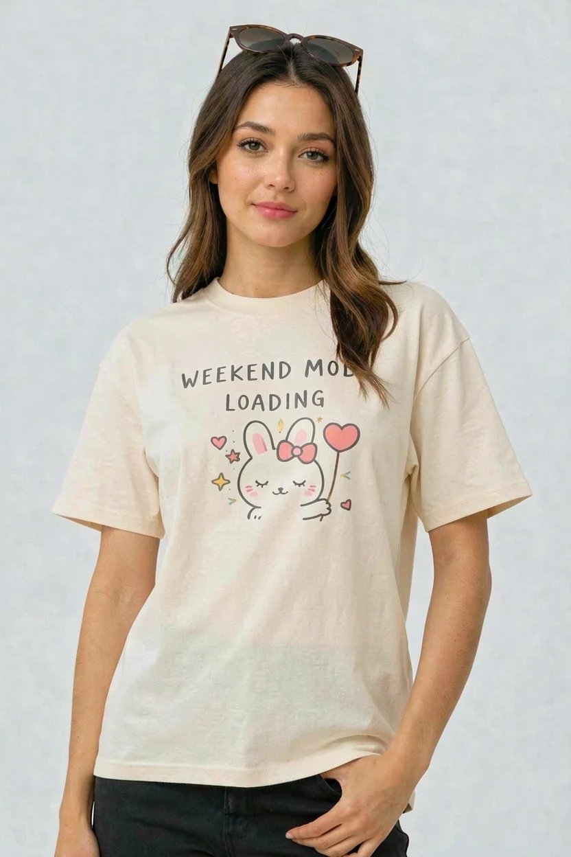 Cute Bunny Weekend Mode Oversized T-Shirt For Women