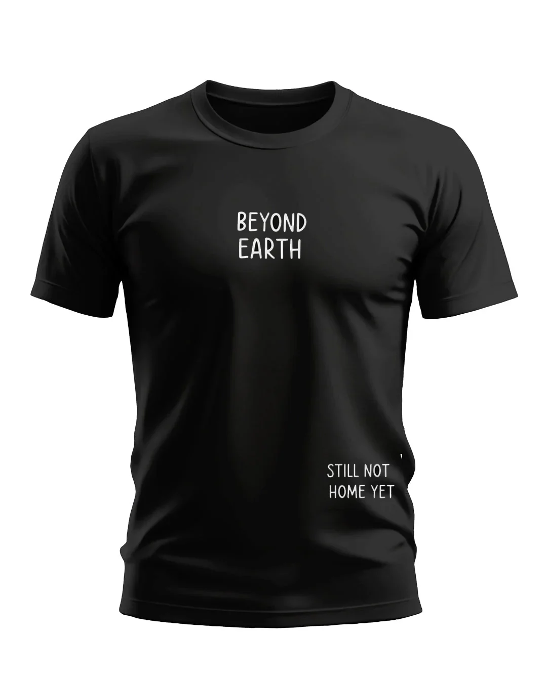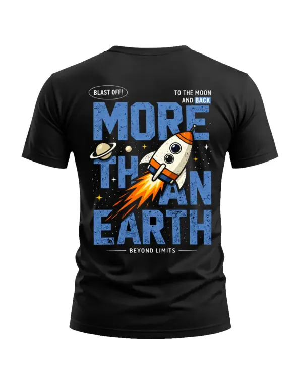 This black graphic t-shirt blends minimal front styling with a playful and eye-catching rocket-themed back print. Designed for those who love space, adventure, and standout casual fashion, it adds a fun and modern touch to your wardrobe.
