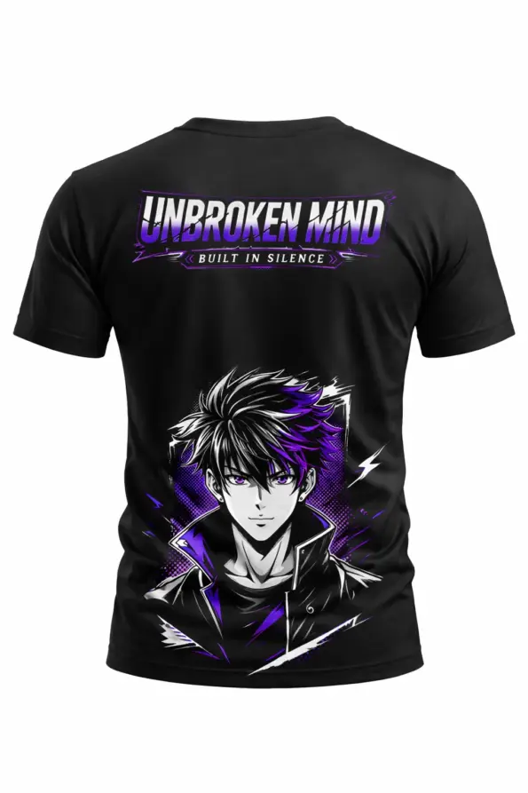 This black graphic t-shirt features a sleek front print and a powerful anime-style back design with a strong motivational vibe. A perfect choice for anime lovers, streetwear fans, and everyday standout styling.