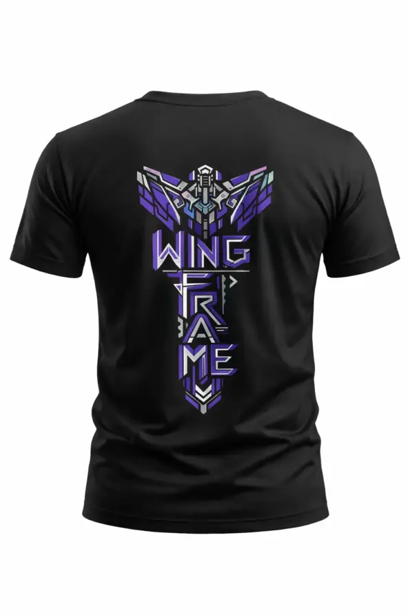 Designed for men who like futuristic and standout fashion, this black graphic t-shirt features a clean front emblem and a bold wing frame back print with a sharp cyber-inspired look. A perfect choice for gamers, anime lovers, and streetwear fans.
